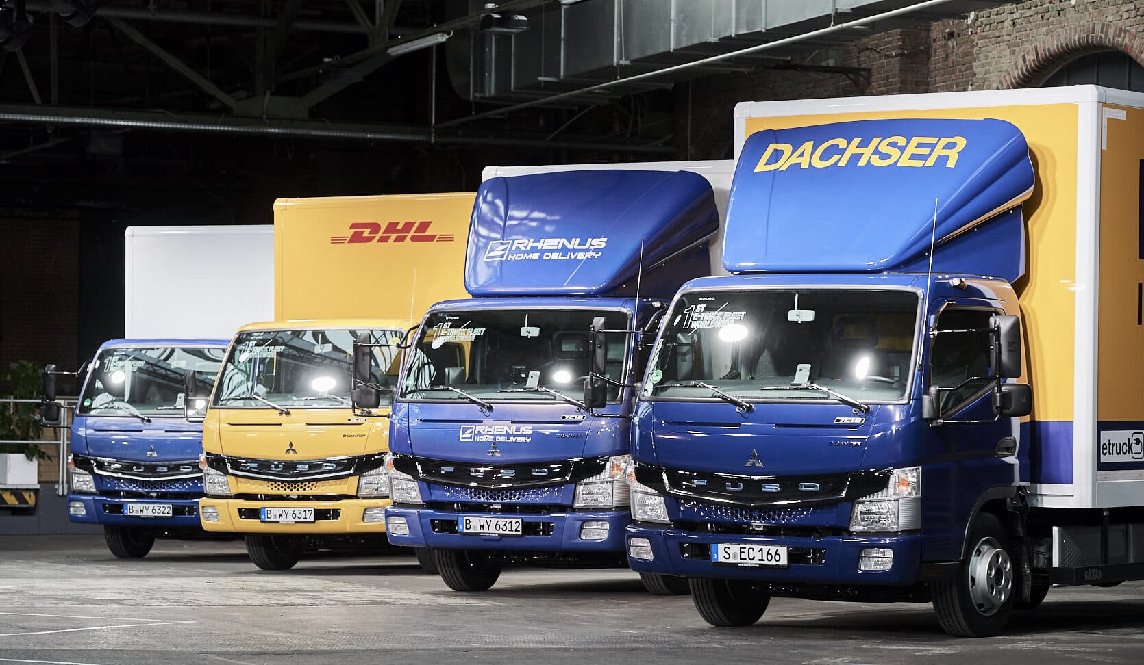 THE FIRST PURELY ELECTRICALLY POWERED FUSO eCANTER FROM SERIES PRODUCTION TO RUN ON EUROPE’S ROADS. NOW IN USE FOR LOGISTICS GIANTS DHL, DB SCHENKER; RHENUS AND DACHSER.